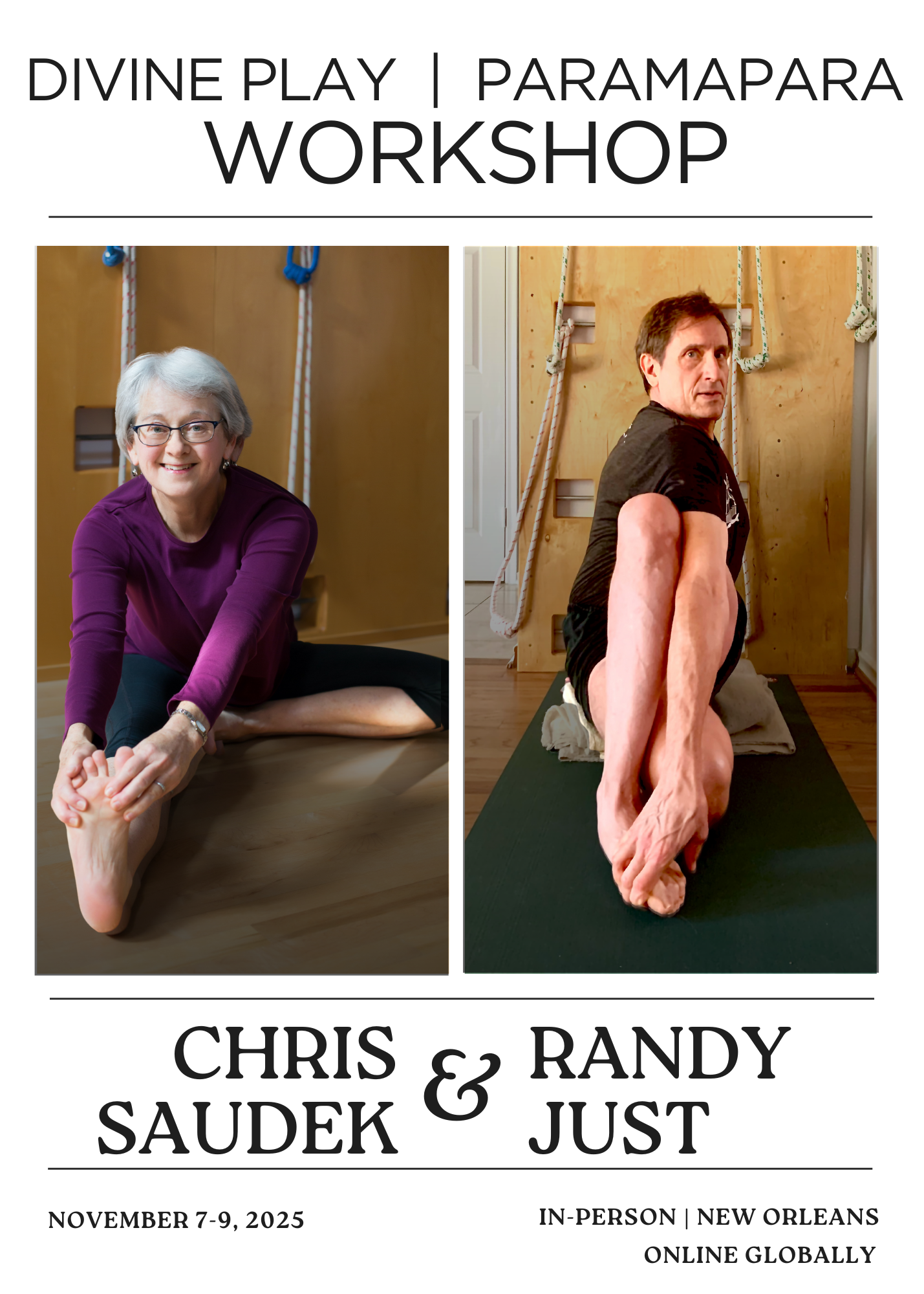 Both Chris and Randy are clear in their instructions, acute in their observation and teach in a clear and demanding manner. They guide students toward a deeper experience through body, mind, and breath. The combined presence of these two talented teachers will honor the lineage of Iyengar Yoga while celebrating the play and vitality of practice.